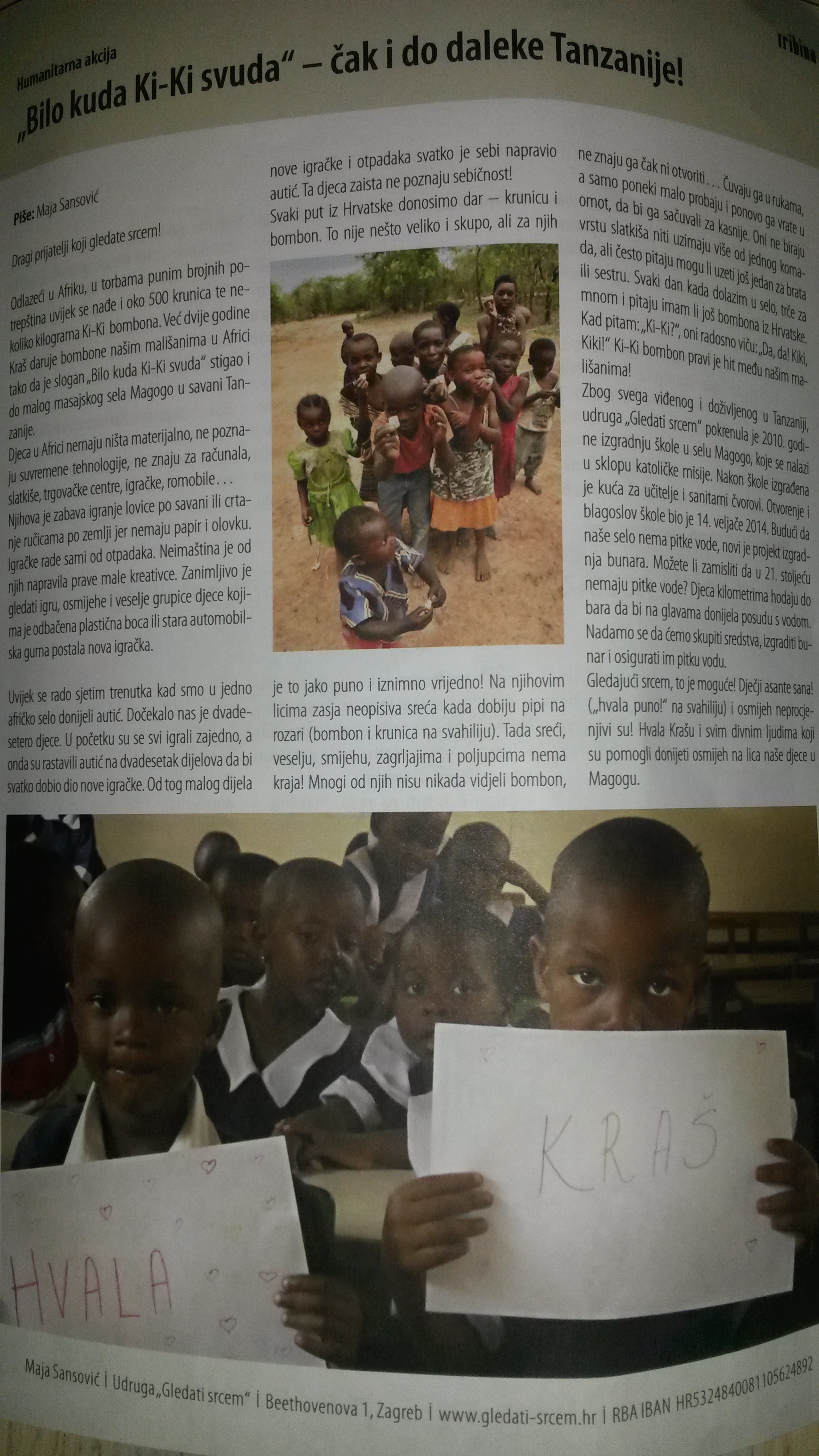 Svima koji su vjerovali u nas i podržavali naše projekte od srca HVALA! Gledajmo i dalje srcem na djecu Tanzanije! Busu (swahili;pusa) iz Afrike!