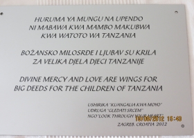 Ploča zahvale koja je postavljena na našu školu u Magogu, Tanzanija.